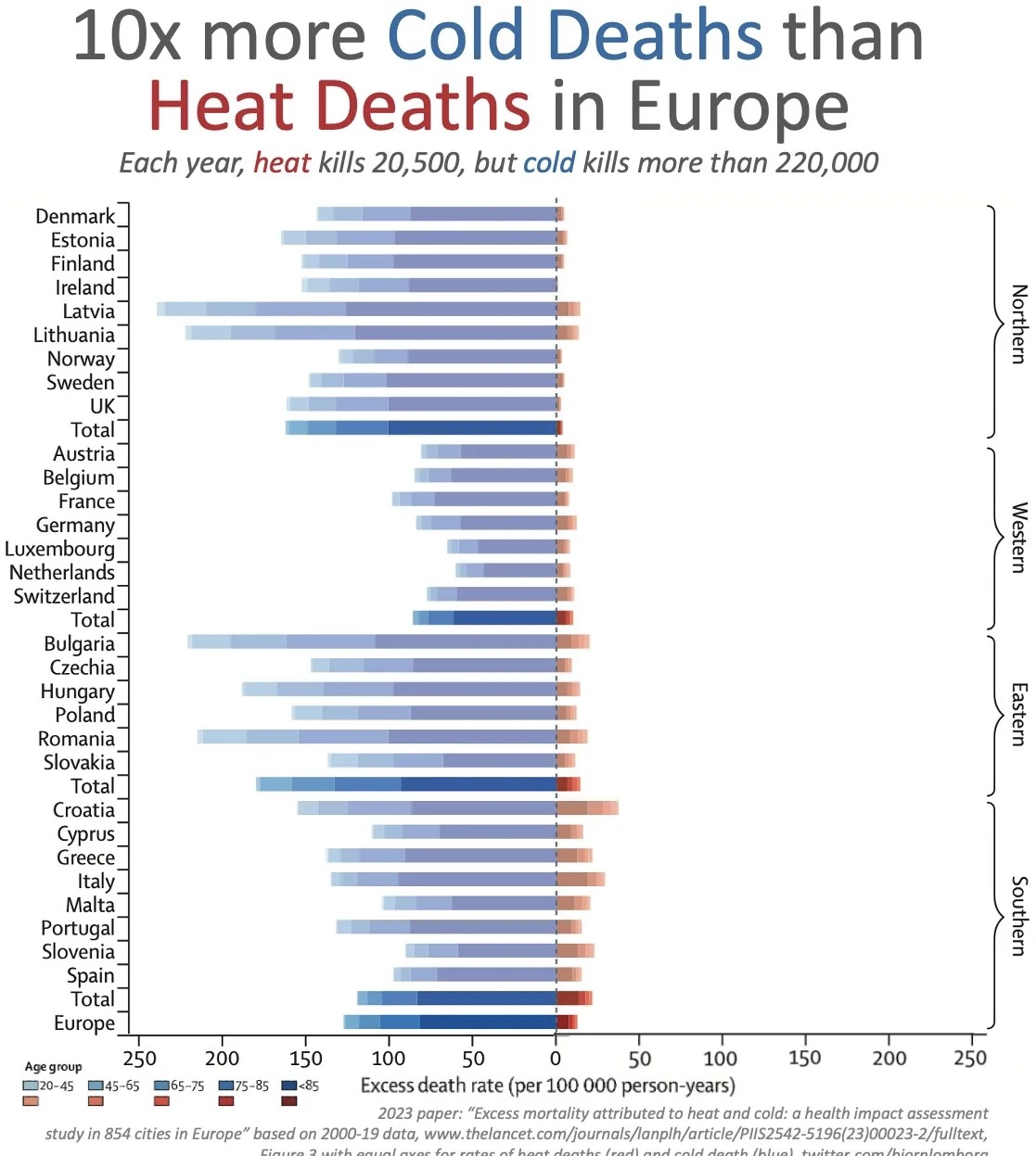Ужас? Конечно ужас! Смерность от жары сравнима со смерностью от холода, а кое-где даже и выше. Теперь смотрим внимательно: