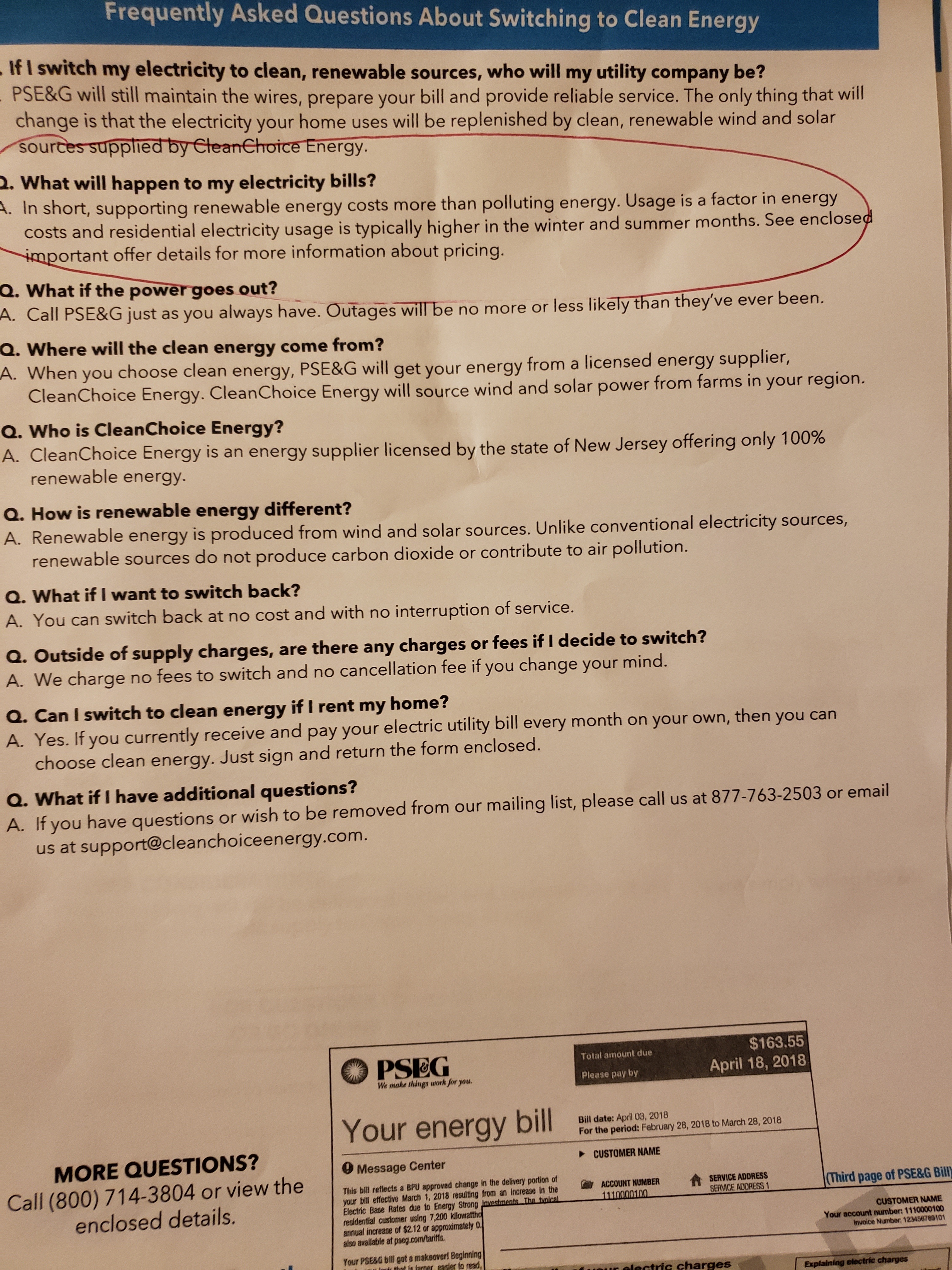 Сейчас. На бумажке -- образец того, как будет выглядеть счёт от них, когда переключишься.helmsman писал(а):Сейчас пришёл? А то на бумажке 18-й годjsjs писал(а): Пришёл по почте огромный конверт с таблицами, диаграммами, цветными иллюстрациями и прочим. Предлагают переключить лепестричество с грязной энергии (polluting energy) на чистую энергию (clean energy). Ничего физически менять дома не надо, батарейки на крышу ставить не надо, просто внести в форму номер счётчика и расписаться. А электрическая компания будет по тем же проводам поставлять такое же электричество, но (якобы) корнями уходящее не в грязную энергию, а в чистую.